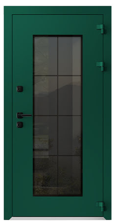 Оцинкованная сталь, атмосфероустойчивая порошковая краска (цвет на выбор), стеклопакет трехкамерный, бронза/хром на выбор, с черной вкладной. декор. решеткой