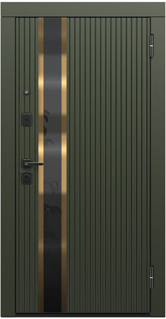 Панель МДФ 16 мм, пленка, «Олива» (102), вставка латунь с черным глянцевым стеклом